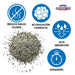 Esta combinación de ingredientes naturales ofrece un sellado superior de olores, rápida aglutinación y mínima presencia de polvo, favoreciendo el bienestar del gato y la higiene constante del arenero.