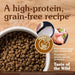 Su fórmula sin granos imita la alimentación natural del felino, aportando proteínas altamente digestibles, antioxidantes vegetales y probióticos específicos que fortalecen su digestión, sistema inmune y bienestar general.